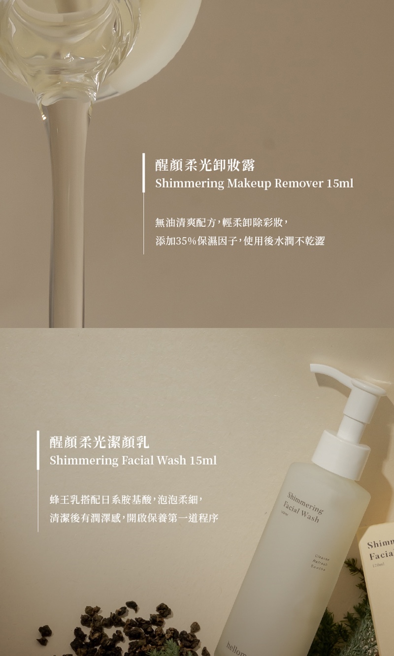 1.醒顏柔光卸妝露 15ml